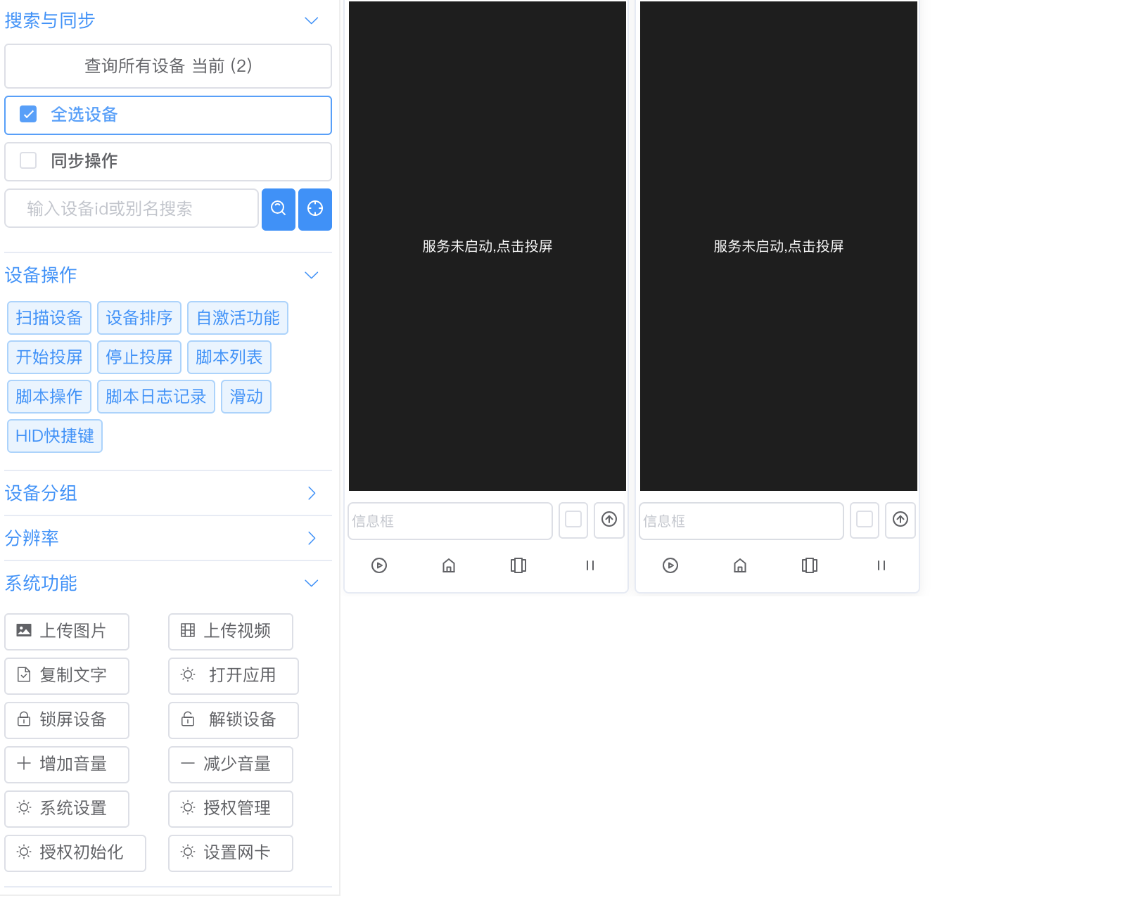 - 启动完成后,手机界面会有 Automating Running 字样,代表成功,然后进入设备授权与投屏授权, 扫描设备 和投屏操作