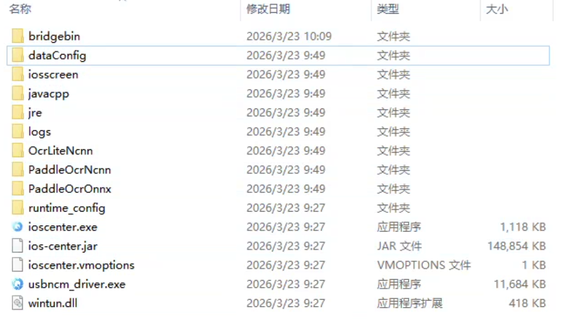 • 下载后文件位于中控这个文件夹内,其中的ioscenter_windows-x64-9.26.0.zip就是Windows版本的中控+投屏软件(其他版本类似),鼠标右键解压一下
