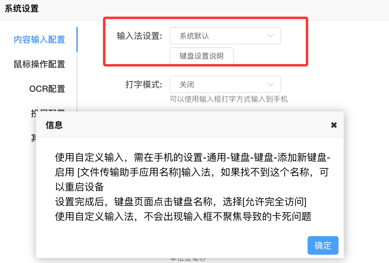 • 可以在系统设置-内容输入设置-输入设置,选择系统默认或者使用自定义输入法