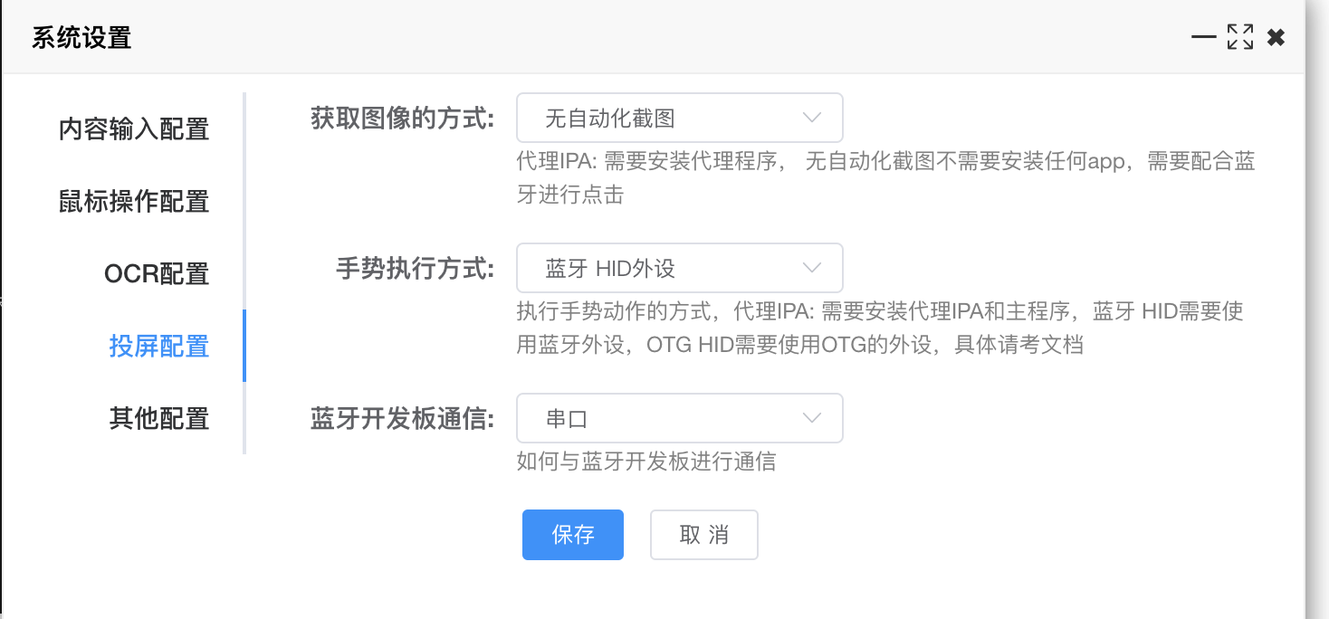 • 其中包括了代理模式投屏和蓝牙HID投屏