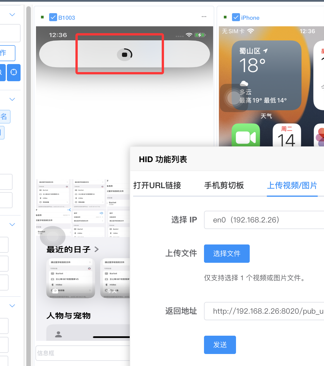• 选择视频或者图片文件,然后点击发送,即可看到快捷键指令被执行,图片或者视频将出现在相册中