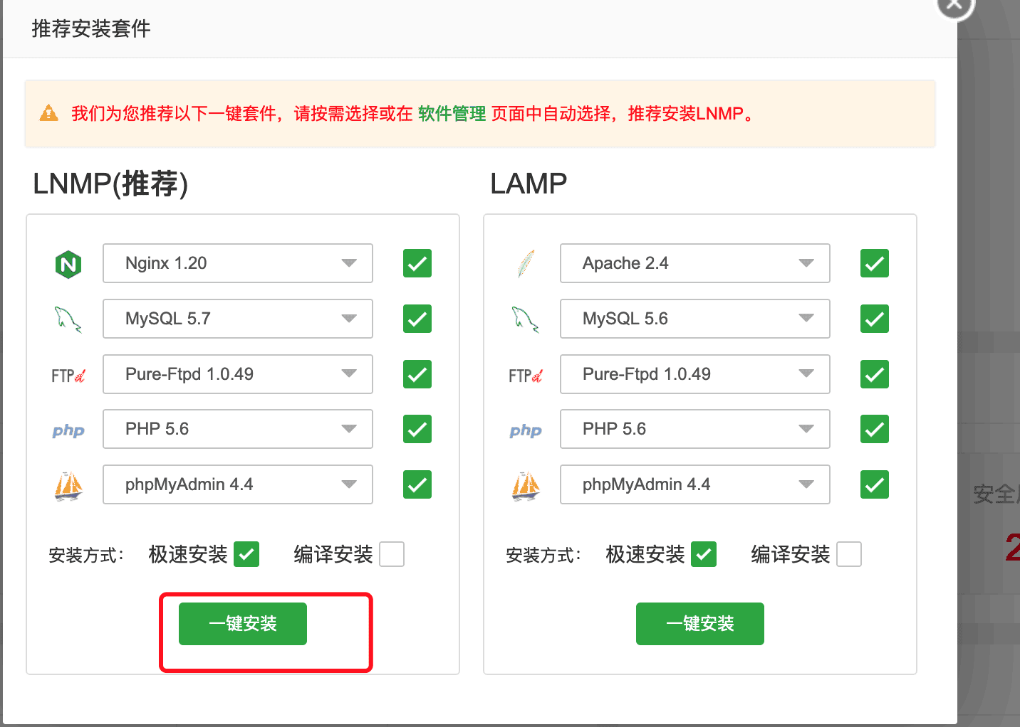 - 1、进入宝塔,如果弹出以下窗口选择myql5.7,点击安装