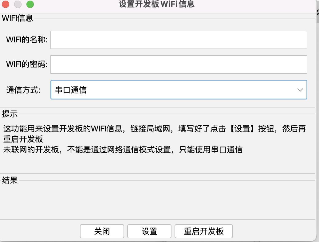 - 和开发板通信有串口和WIFI模式,串口是通过USB直接发送和接收数据,这个无需其他配置