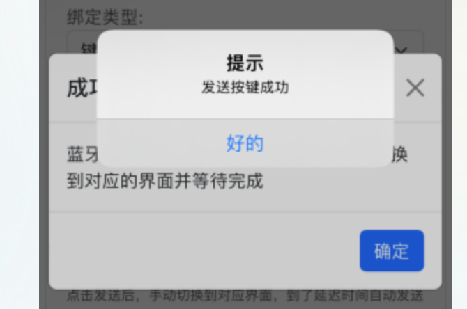 - 再次返回app的快捷键绑定页面,可以看到成功提示,如果失败了,可以继续重试,其他快捷键绑定也是类似