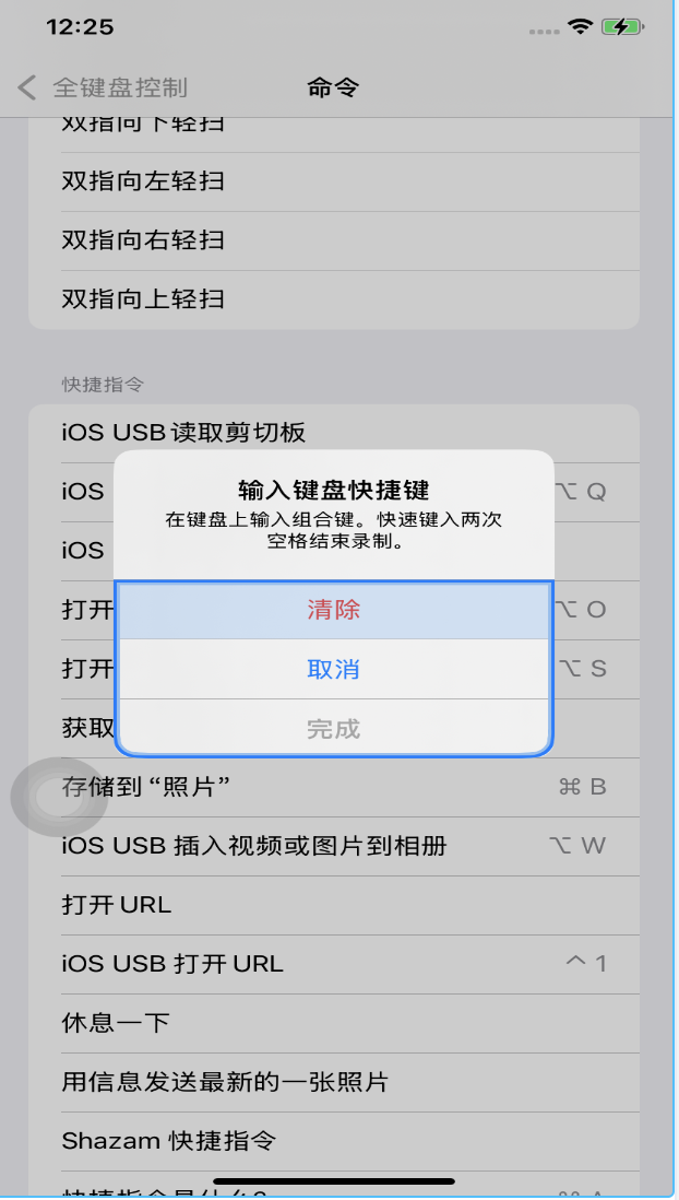 • 快捷指令建立完成后,到手机设置-辅助功能-键盘与键入-全键盘打开-命令,下拉找到快捷指令-iOS USB插入视频或图片到相册,实际已你的命名为准