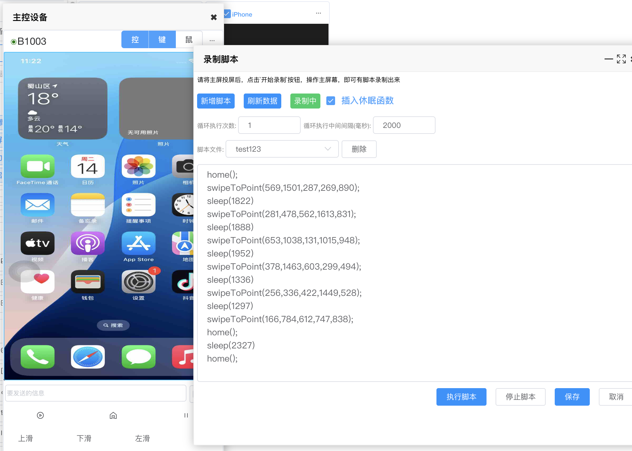 • 新建一个脚本,再点击开始录制按钮,即可在主控上面操作,录制脚本框接口看到函数出现
