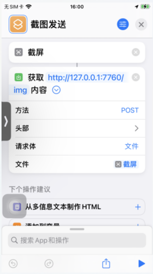 • 先截屏,然后发送到 http://127.0.0.1:7760/img 这个地址