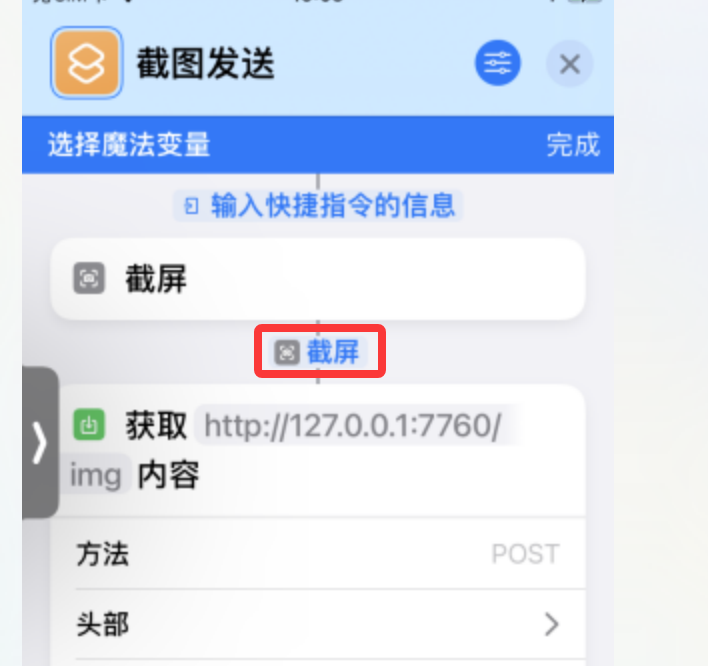 • 如果选择不到截屏,点击选择变量,选择魔法变量,选择截屏即可