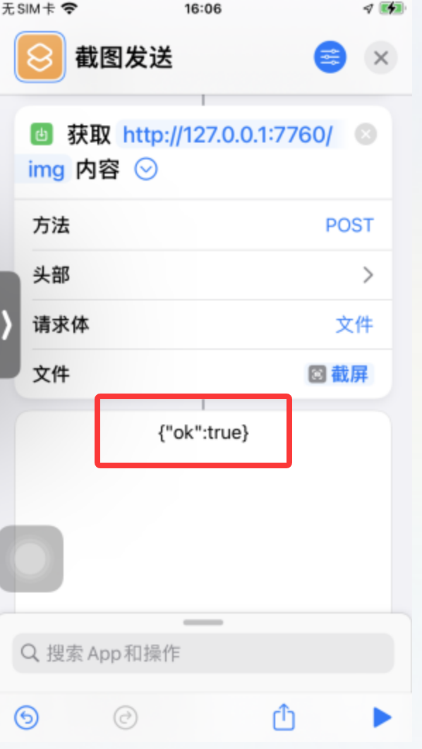 • 快捷指令截图是配合通过绑定快捷指令的快捷,然后截图后发送到脚本
