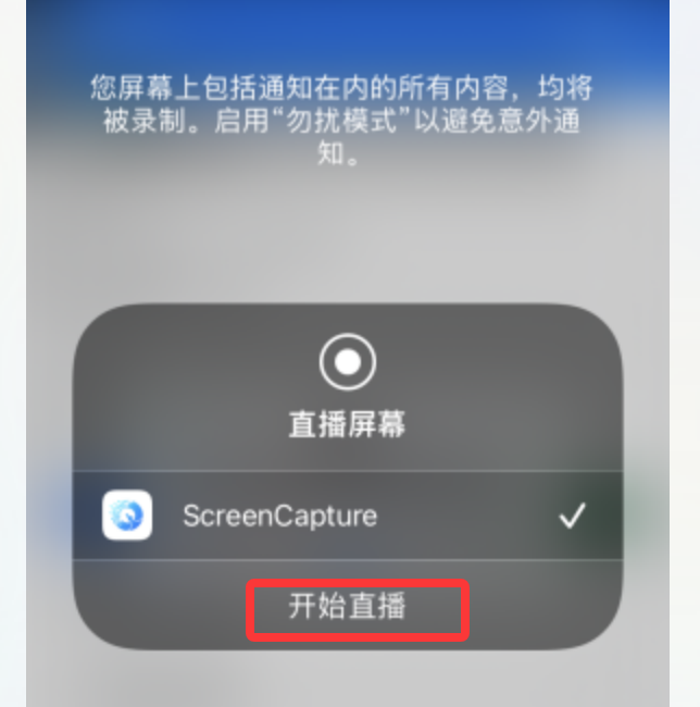 • 录屏提示,点击开始直播按钮,会提示三秒后开始